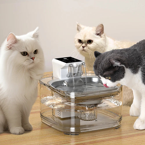 3.2L Wireless Induction Pet Water Dispenser with USB/Battery Stainless Steel Cat Fountain with Visible Window Remote Control